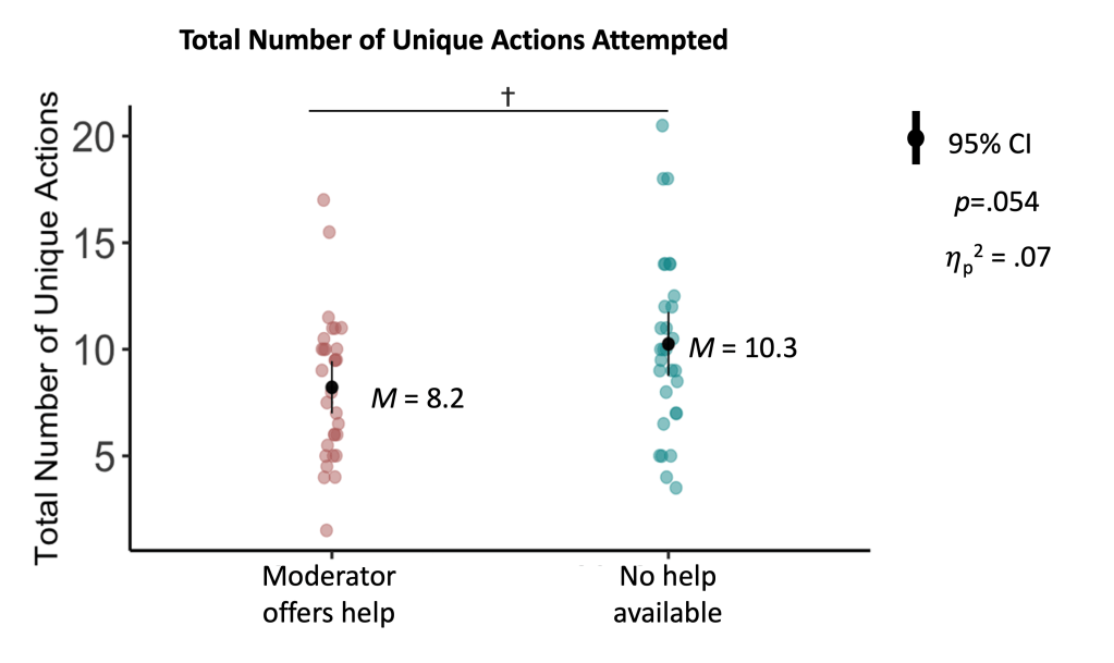 When adults offered help too soon, kids gave up faster and explored less. Let kids struggle a bit before support appears. Optional, child-initiated help keeps curiosity alive.